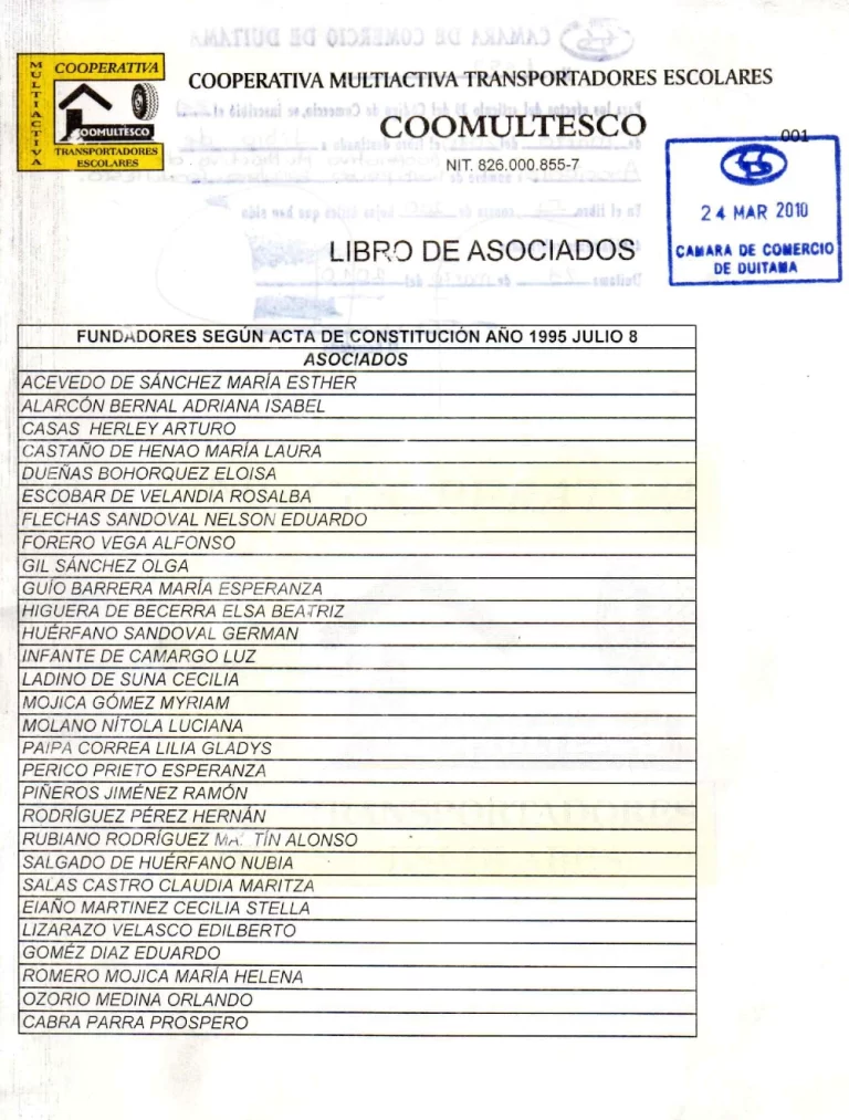 COOMULTESCO es la Cooperativa constituida como entidad de economía solidaria e inscrita en la Camara de Comercio el día 22de Júlio de 1997 con domicilio principal en la ciudad de Duitama.